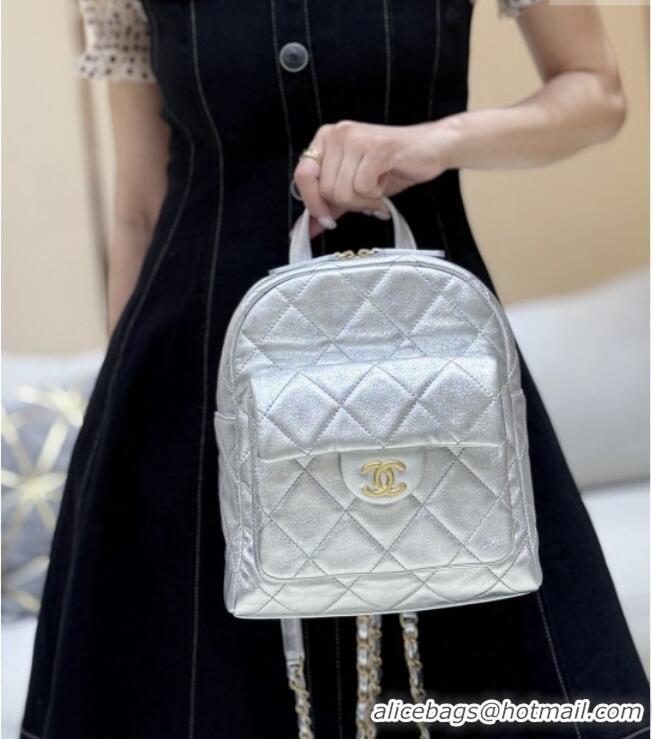 Super Quality Chanel Backpack in Silver Calfskin AS5793 Fall-Winter 2025/2026
