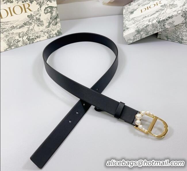 Luxury Discount Dior Calfskin Leather Belt 3cm with Pearls CD Buckle 0108 Black/Gold 2025