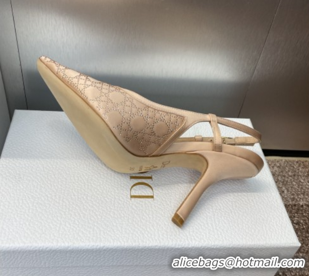 Lowest Cost Dior Capture Slingback Pumps 9.5cm in Satin with Strass Cannage Motif Nude 0822078