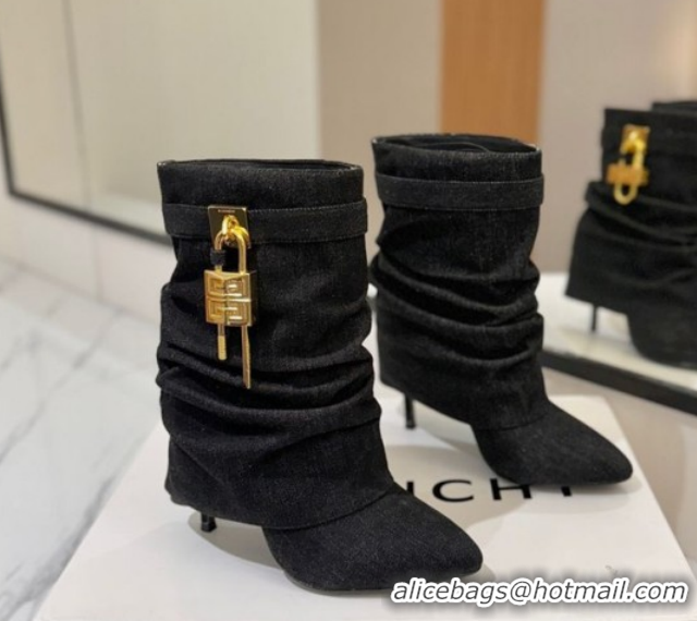 Luxury Givenchy Shark Lock Heel Ankle Boots 10.5cm in Washed Denim Black 1210035 2026