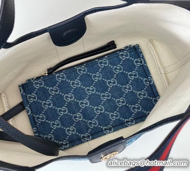 Luxury Discount Gucci Giglio Small Tote Bag in GG Denim 860845 Dark Blue 2025