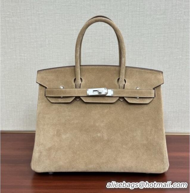 Promotional Hermes Birkin 30 Bag in Suede Leather H30 Beige/Silver 2025 (Half Handmade)