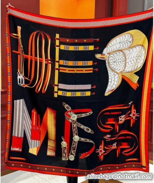 Luxury Discount Hermes Cashmere Silk Letters Equestres Shawl Scarf 140x140cm H1502 Black 2026