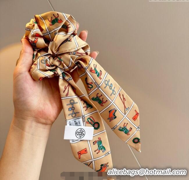 Luxury Discount Hermes Horse Twilly Silk Bandeau and Hairring Set 0724 Beige 2025