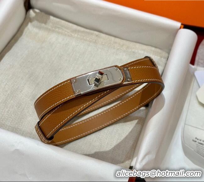 Luxury Discount Hermes Kelly Duo Belt 1.8cm in Epsom Calfskin H102202 Brown/Silver 2024