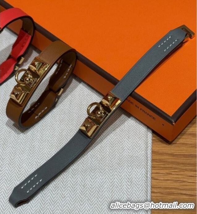 Most Popular Hermes Rivale Mini bracelet 7 in Swift Leather and Studs HS010407 Grey 2025