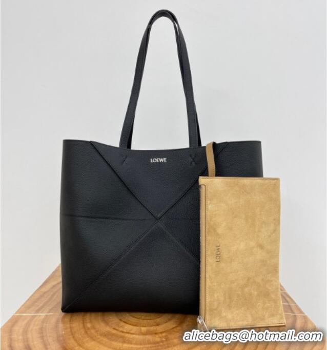 Good Taste Loewe Medium Horizontal Puzzle Fold Tote in Soft Grained Calfskin 20601 Black 2025