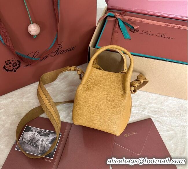 Luxury Discount Loro Piana Small Bale Bucket Bag in Grained Calfskin Leather 0925 Ginger Yellow 2025