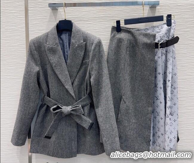Luxury Discount Louis Vuitton Skirt and Jacket Set LV031101 Grey/Blue 2026