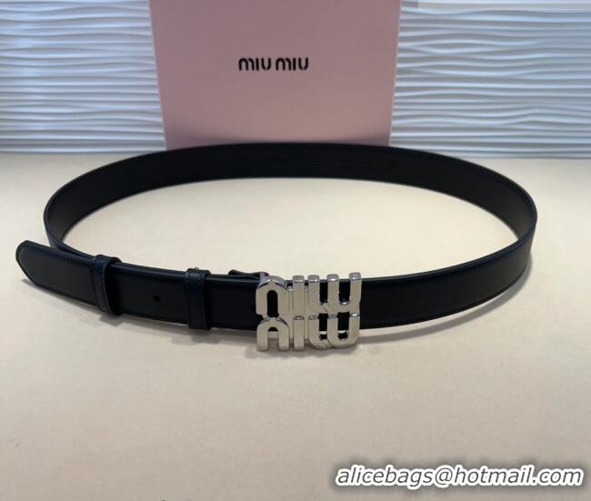 Luxury Discount Miu Miu Calfskin Belt 3cm with MIU Buckle MM102201 Black/Silver 2024