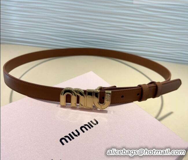 Luxury Discount Miu Miu Leather Belt 2cm with logo Buckle 0708 Brown/Gold 2024