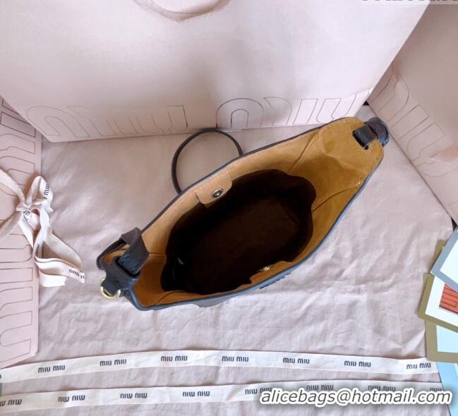 Grade Sophisticated Miu Miu Denim and Leather bucket bag 5BE090 Blue 2024