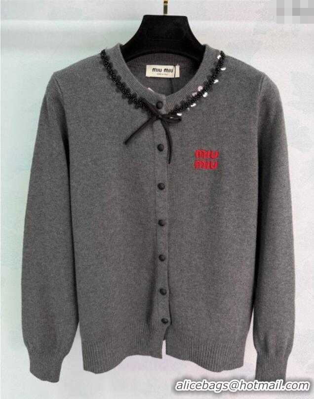 > Clothes Online > Miu Miu Clothes > Luxury Discount Miu Miu Wool Cardigan with Sequin and Bow MM122512 Grey 2025