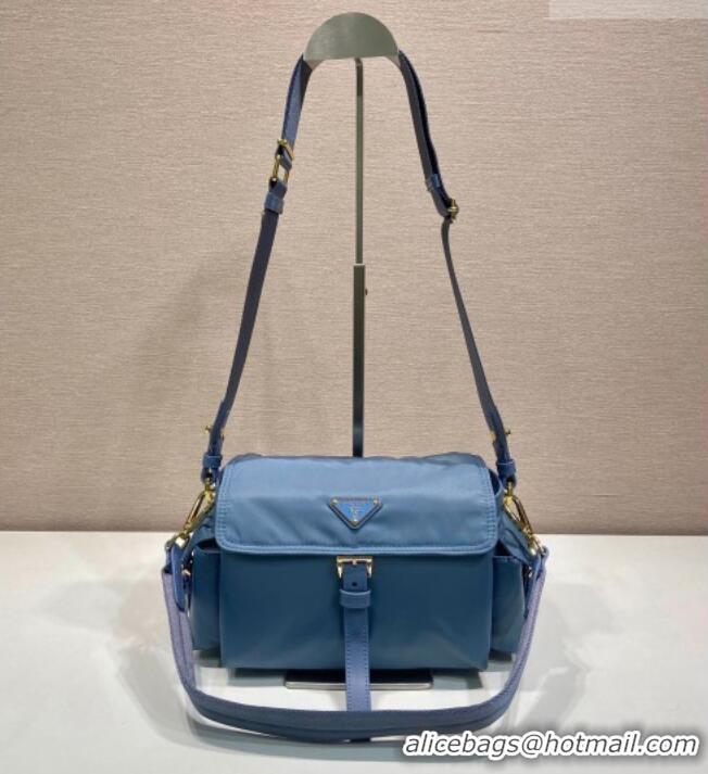 Luxury Discount Prada Explore medium Re-Nylon shoulder bag with flap 1BD394 Blue 2026