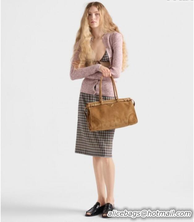 Grade Design Prada Bonnie large suede handbag 1BA433 Cinnamon Brown 2025