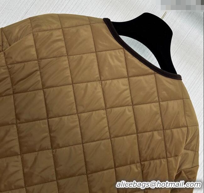 Luxury Cheap Prada Quilted Cotton-Padded Short Jacket Brandy PR091964 Brown 2025