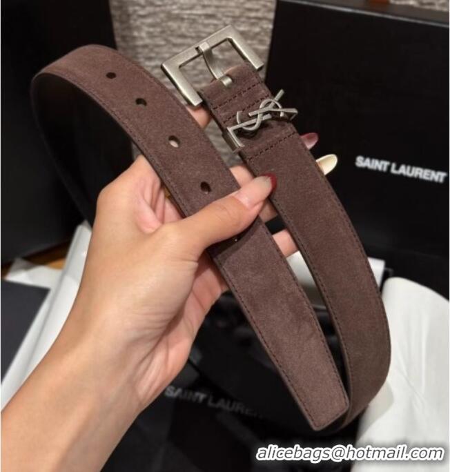 Luxury Discount Saint Laurent Cassandre Belt 3cm in Suede and Leather YSL26010401 Chocolate 2025