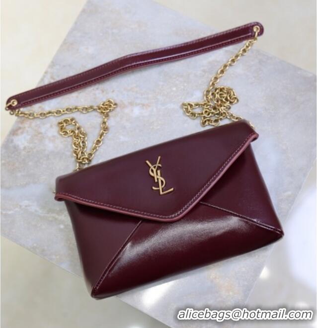 Good Taste Saint Laurent Cassandre Chain Clutch in Shiny Leather 819271 Dark Burgundy 2025