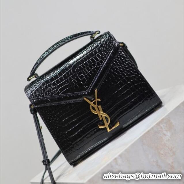 Luxury Discount Saint Laurent Cassandre Mini Bag in Crocodile Embossed Leather 602716 Black 2025