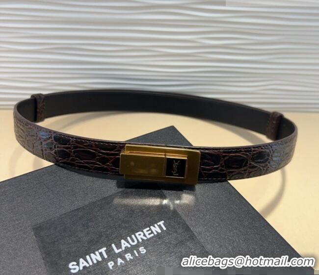 Luxury Discount Saint Laurent Crocodile Embossed Leather Belt 2.5cm 0317 Brown/Gold 2025