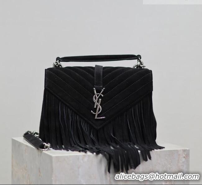 Best Product Saint Laurent Medium Monogram College Bag in Suede with Tassel 392737 Black 2026