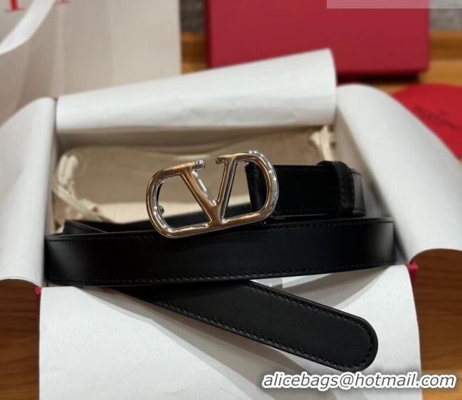Luxury Discount Valentino VLogo Calfskin Leather Belt 2cm VL091201 Black/Silver 2025