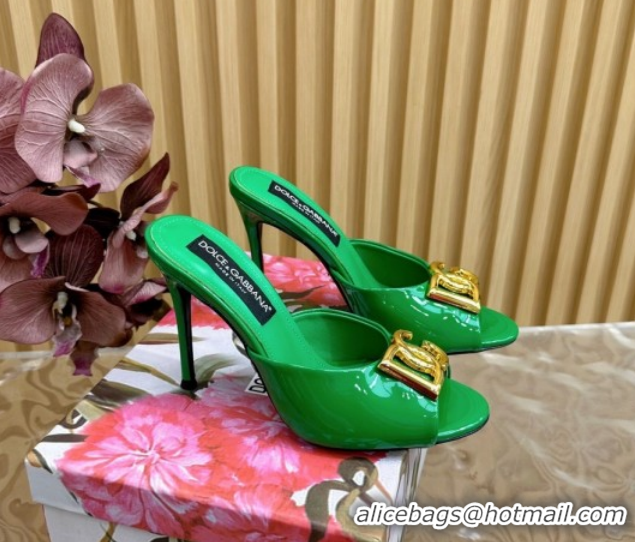 Luxury Dolce & Gabbana Patent Leather Heel Slides Sandal 10cm with DG Logo DG121103 Green 2026
