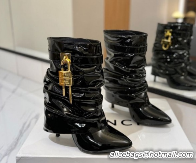 Luxury Givenchy Shark Lock Heel Ankle Boots 10.5cm in Patent Leather Black 1210033 2026