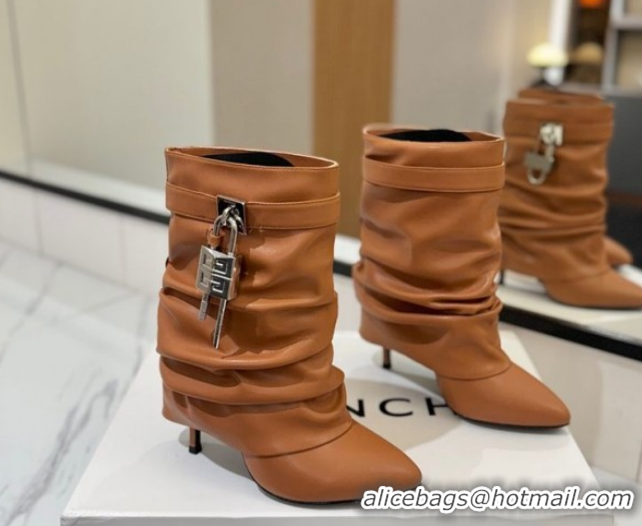 Your Position: Home > Shoes Plaza > Givenchy Shoes > Luxury Discount Givenchy Shark Lock Heel Ankle Boots 10.5cm in Calfskin Leather Brown 1210034 2026