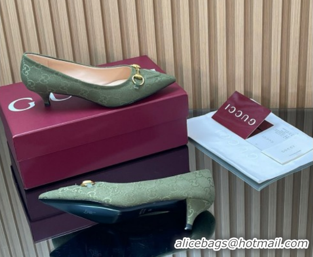 Discount Gucci GG Canvas Pumps 4.5cm with Horsebit Green 1218059 2026