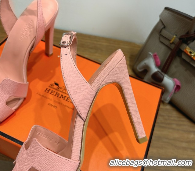 Luxury Hermes Eremite Heel Sandals 10cm in Grained Leather Pale Pink H02275 1023167