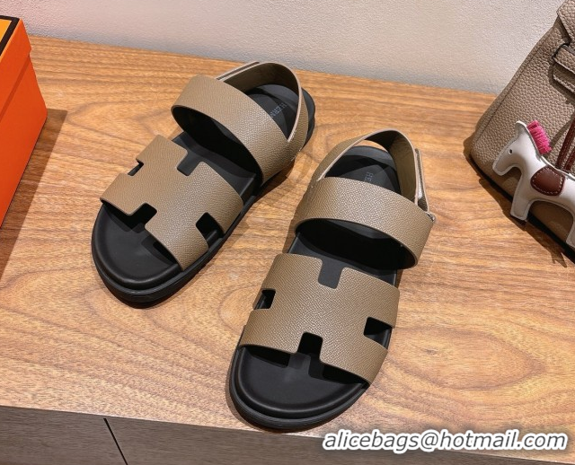 Popular Style Hermes Genius Strap Sandals in Grained Leather Grey H082011 0820166