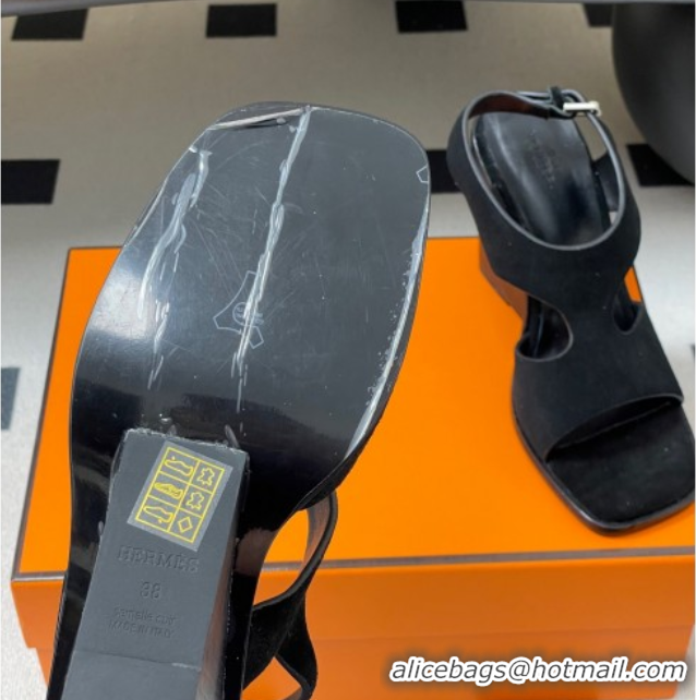Luxury Hermes Kalya Wedge Sandals 10cm in Suede Black 1023170