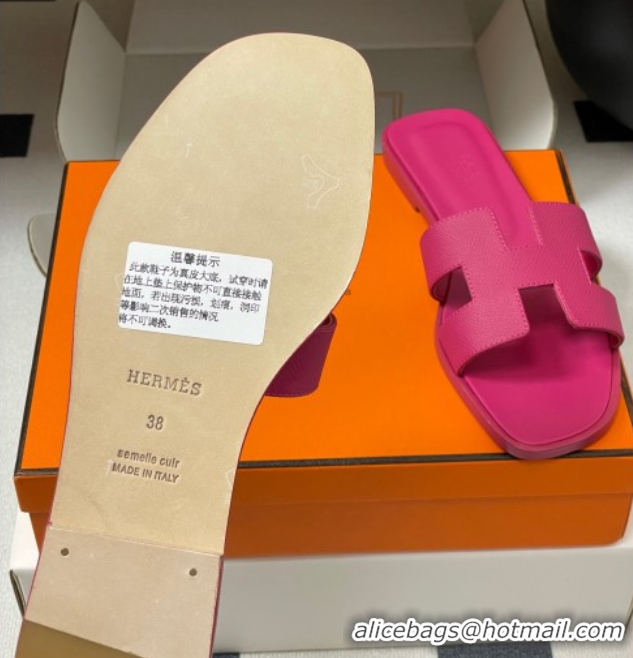 Your Position: Home > Shoes Plaza > Hermes Shoes > Luxury Hermes Oran Classic Flat Slides Sandal in Palm-Grained Calfskin Fuchsia Pink 0819016