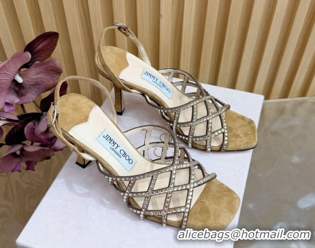 Best Price Jimmy Choo Suede and Strass Heel Sandals 9cm JC020701 Beige 2026