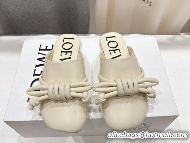 Luxury Loewe Flamenco Knot Flat Mules in Lambskin Leather Butter White 2026 0226006