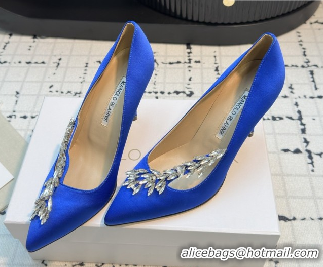 Grade Quality Manolo Blahnik Satin Pumps with Wheat Ear Rhinestone 9cm Heel 5112507 Blue 2026