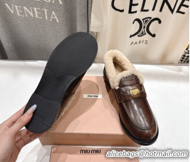 > Shoes Plaza > Miu Miu Shoes > Big Discount Miu Miu Bleached Leather and Wool Loafers with Coin Brown 5D530E 1025064 2025