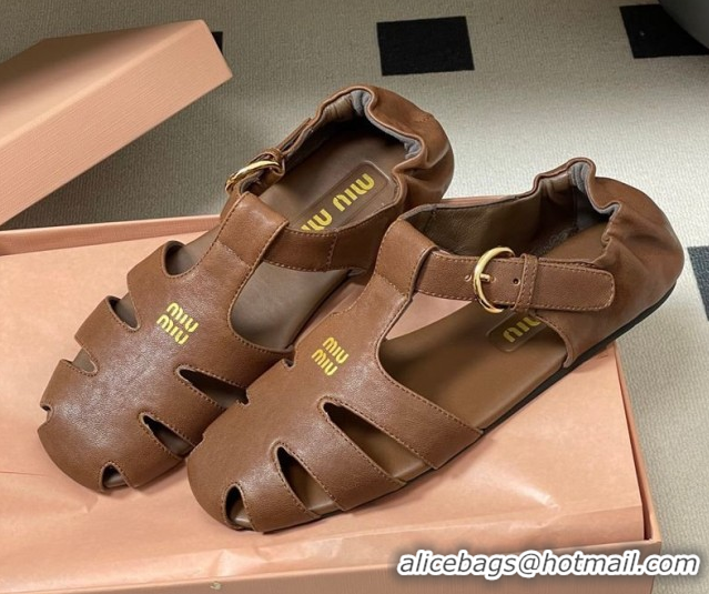 Luxury Miu Miu Nappa Leather Fisherman Flat Sandals 5E395E Dark Brown 2026