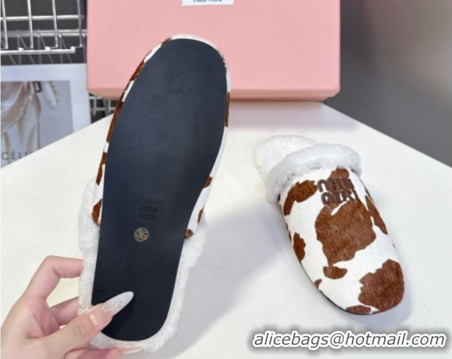Your Position: Home > Shoes Plaza > Miu Miu Shoes > Grade Miu Miu Leather and Wool Flat Mules White/Brown MM102502 1025058 2025