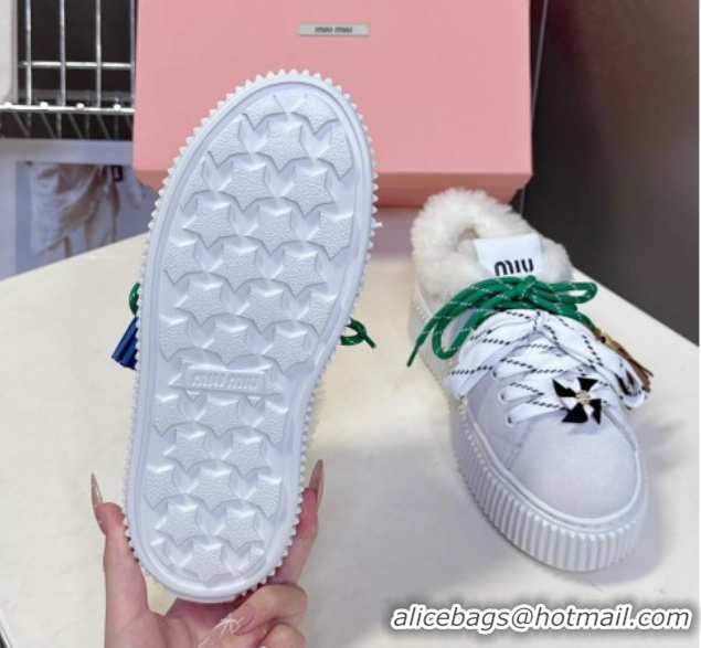 > Shoes Plaza > Miu Miu Shoes > Good Quality Miu Miu Suede and Wool Platform Sneakers 4.5cm with Charm Grey 1024099