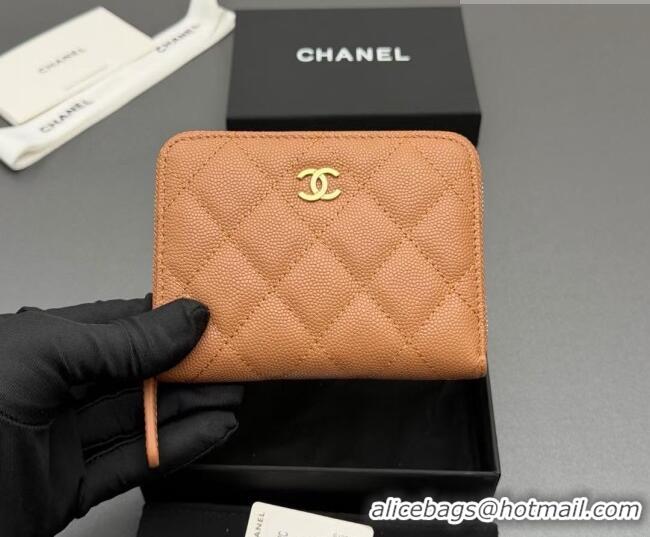 Best Price Chanel Zipped Short Wallet in Grained Leather AP4652 Light Brown 2026
