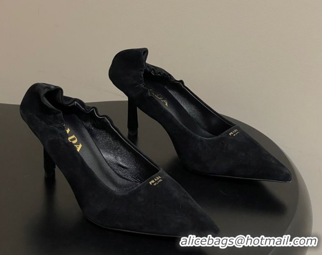 Popular Style Prada Suede Elastic Heel Pumps 7.5cm Black 1I188O 1205033 2026