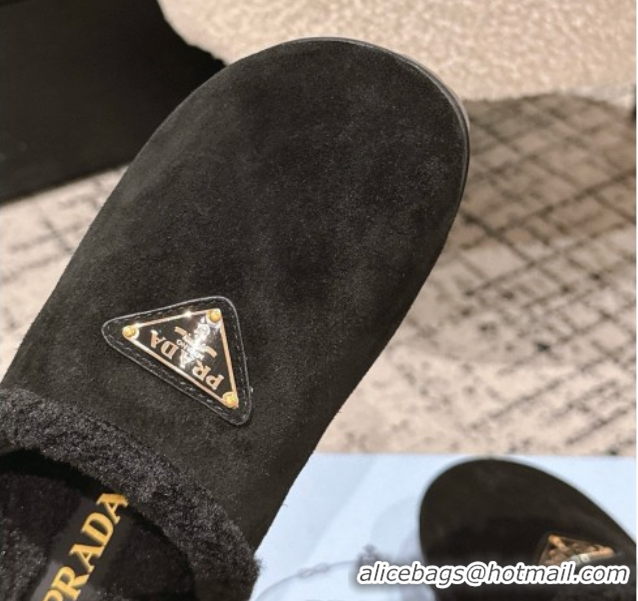 Sophisticated Prada Suede and Shearling Flat Mules Black 2025 PR102702 1027027