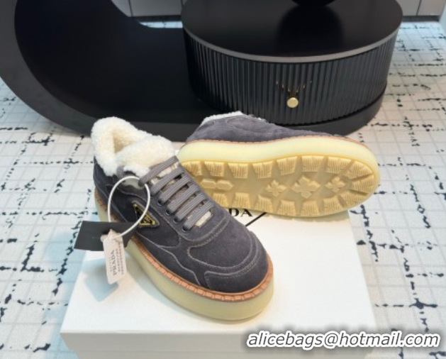 > Shoes Plaza > Prada Shoes > Shop Cheap Prada Suede and Wool Platform Mid-top Sneakers 5cm Grey 2025 1T725N 1027093