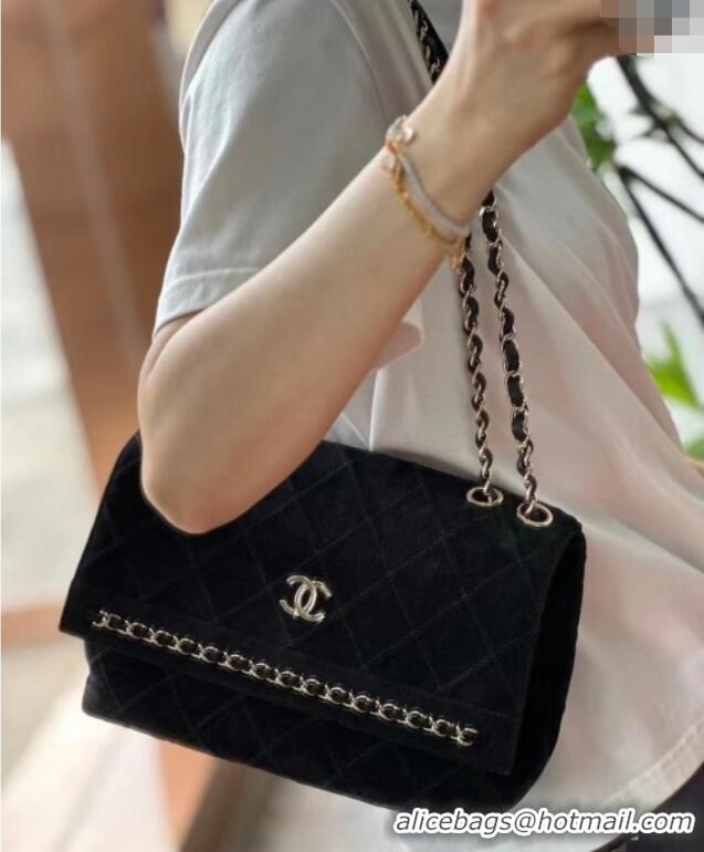 Luxury Promotional Chanel Quilted Suede Flap Bag with Chain CH112702 Black 2025