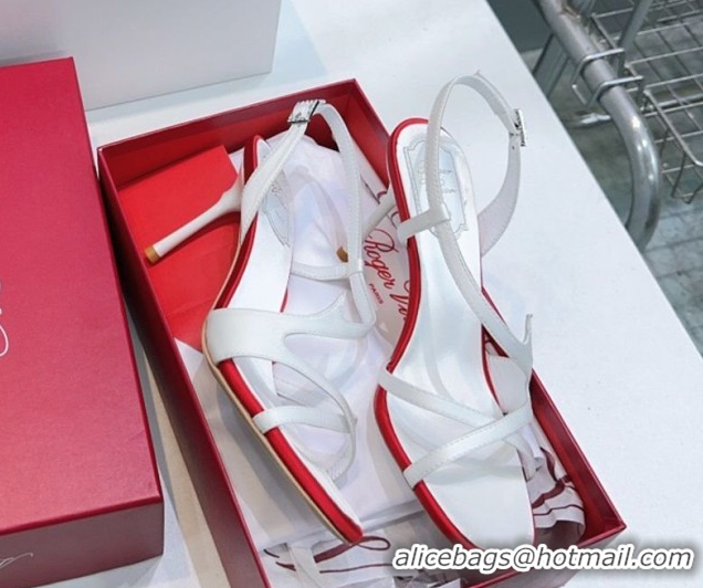 Luxury Roger Vivier Rose Heel Sandals 10cm in Satin 0225020 White 2026