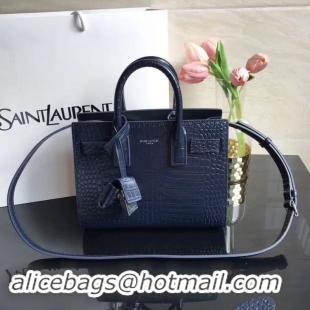 Elegant SAINT LAURENT Crocodile-Embossed Leather Organ Bag 392035 Dark Blue