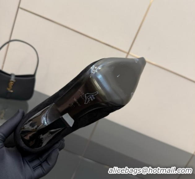Unique Style Saint Laurent Suede Heel Ankle Boots 11cm with Metallic Point Black 1028122