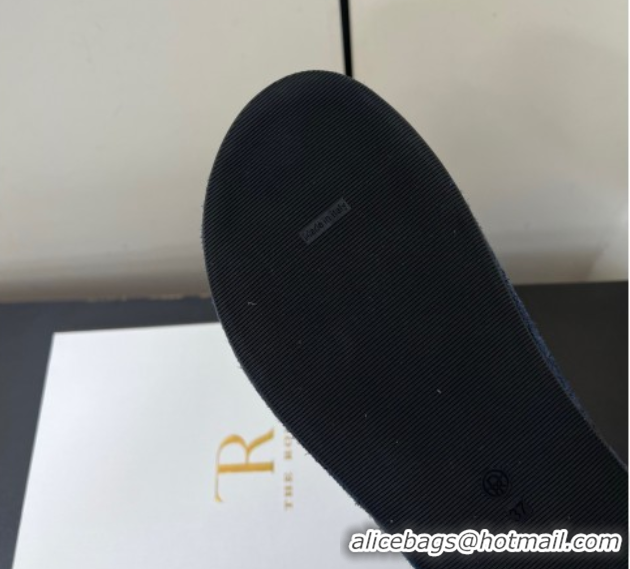 Modern The Row Suede Platform Slides Sandal Dark Blue 0604101